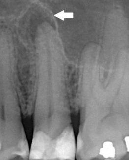 I фаза (периодонтална): Възпалението е около върха на корена на зъба.